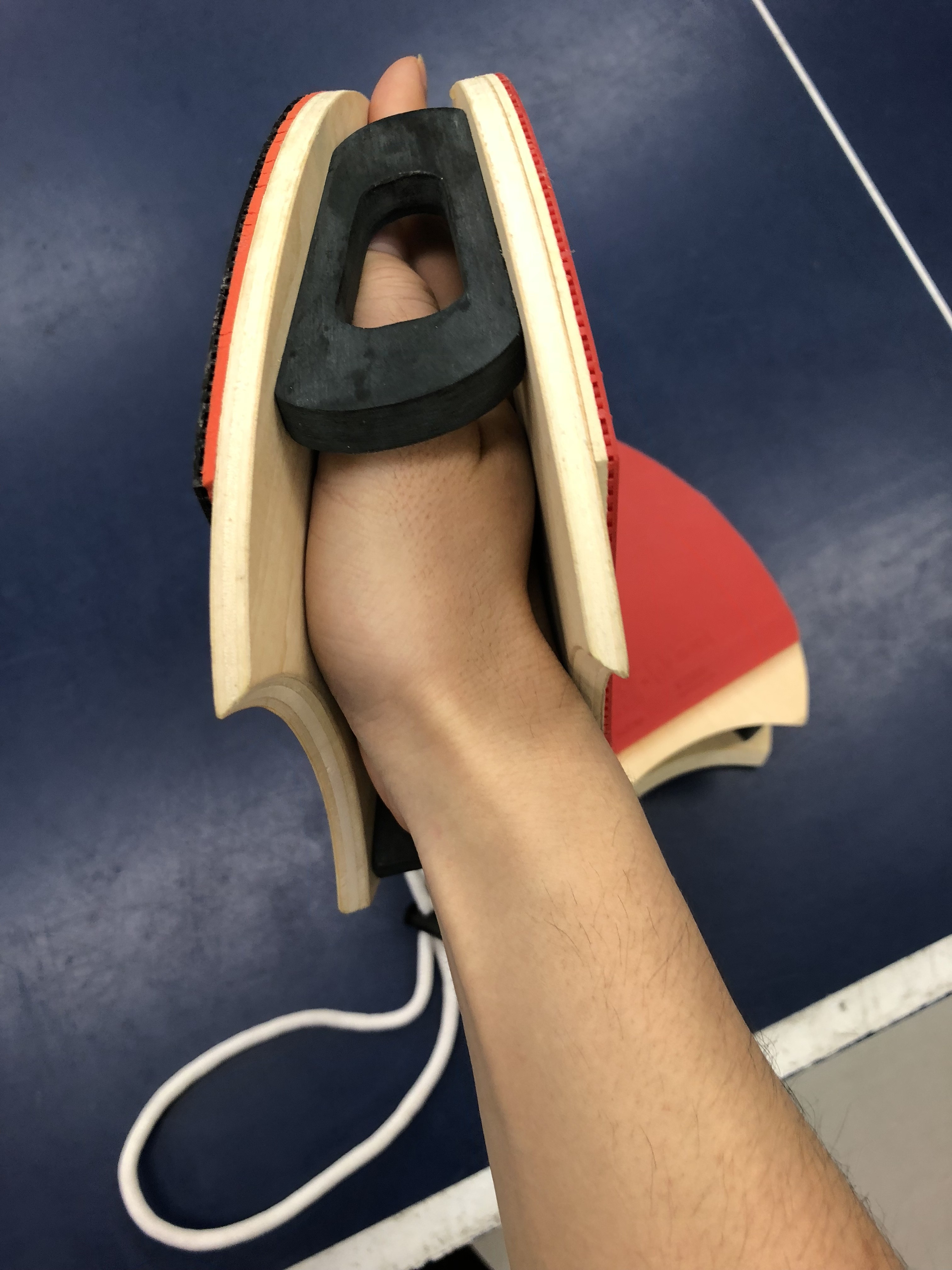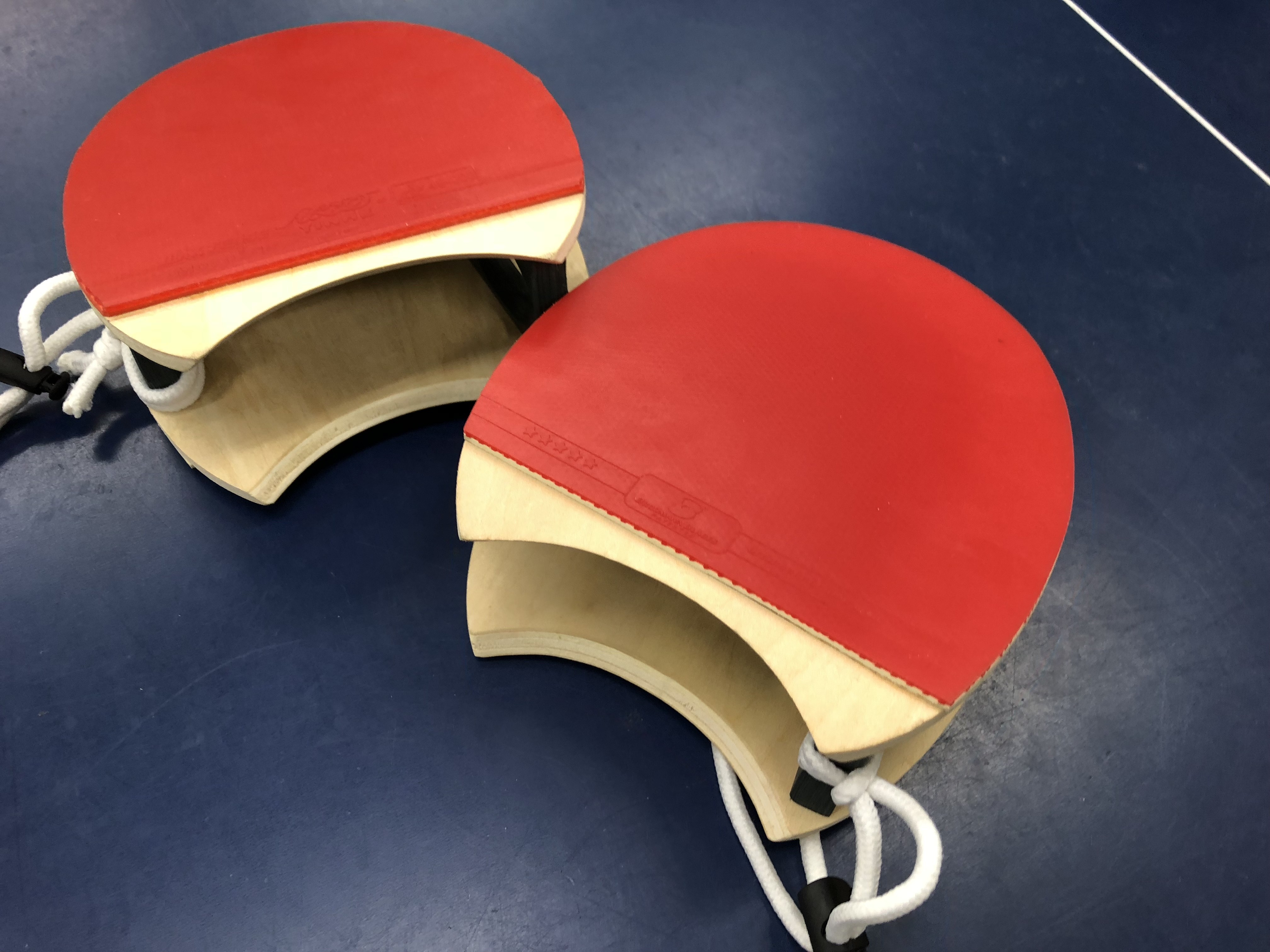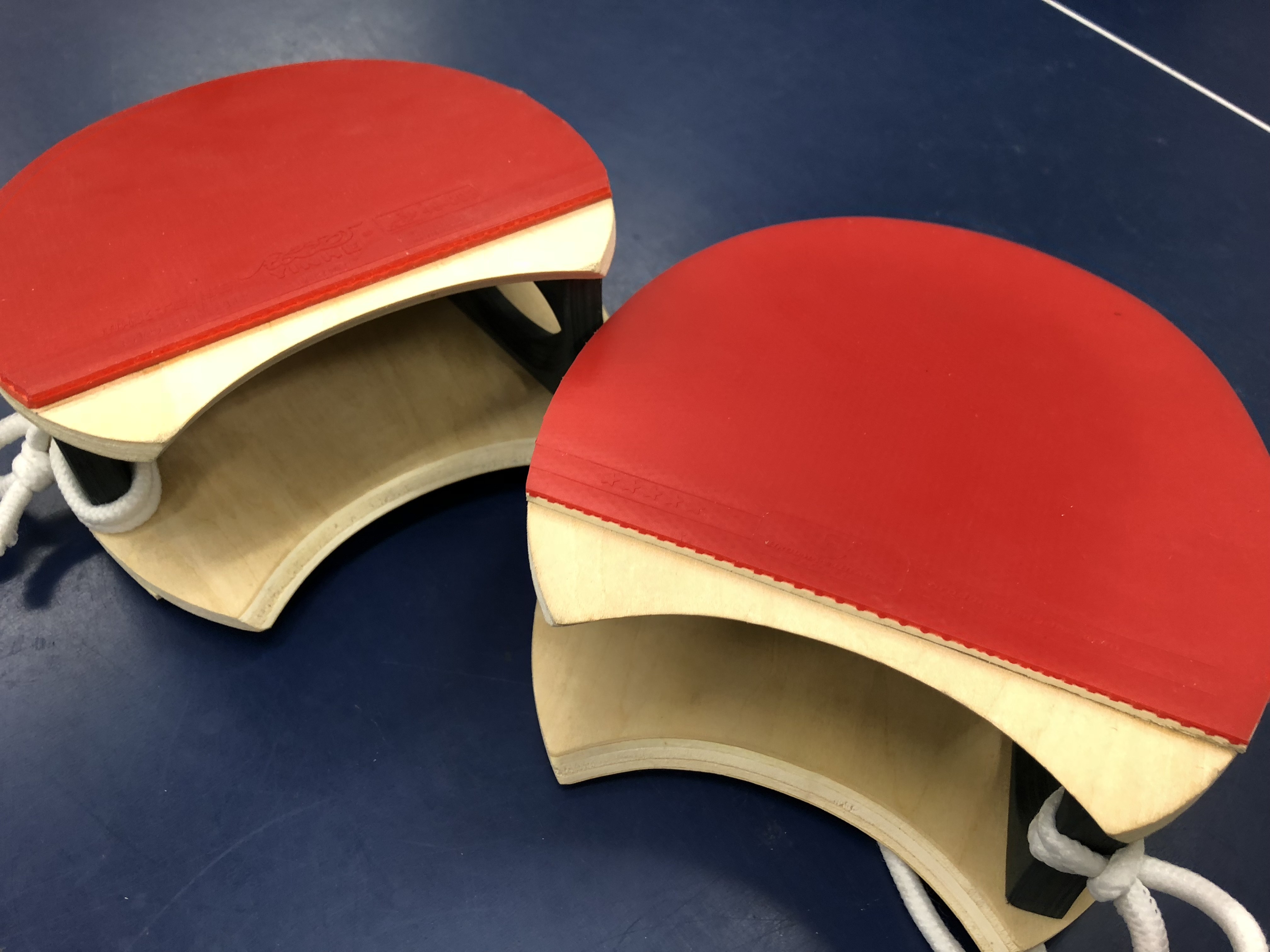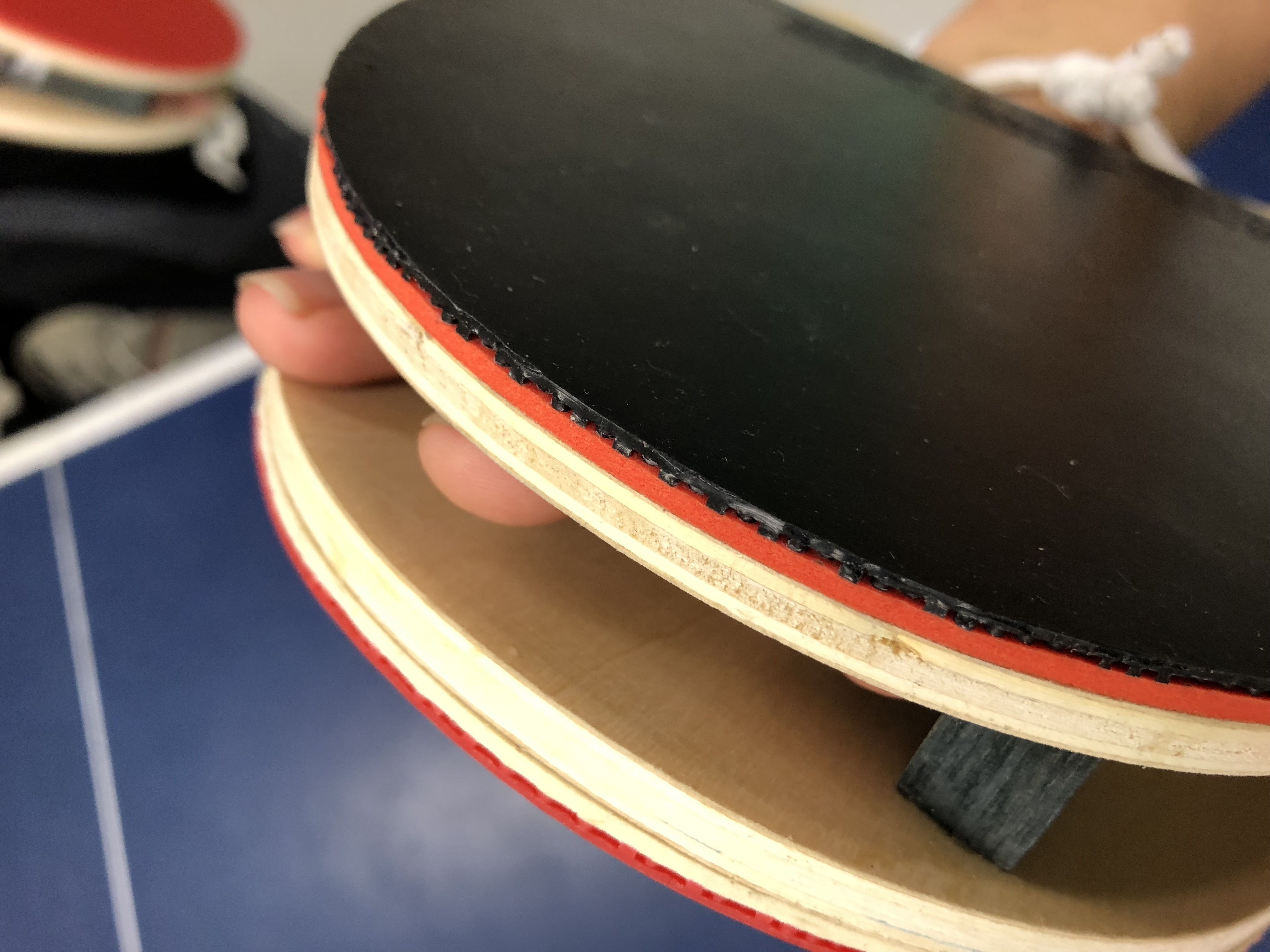 赤ラバーと黒ラバーの板が