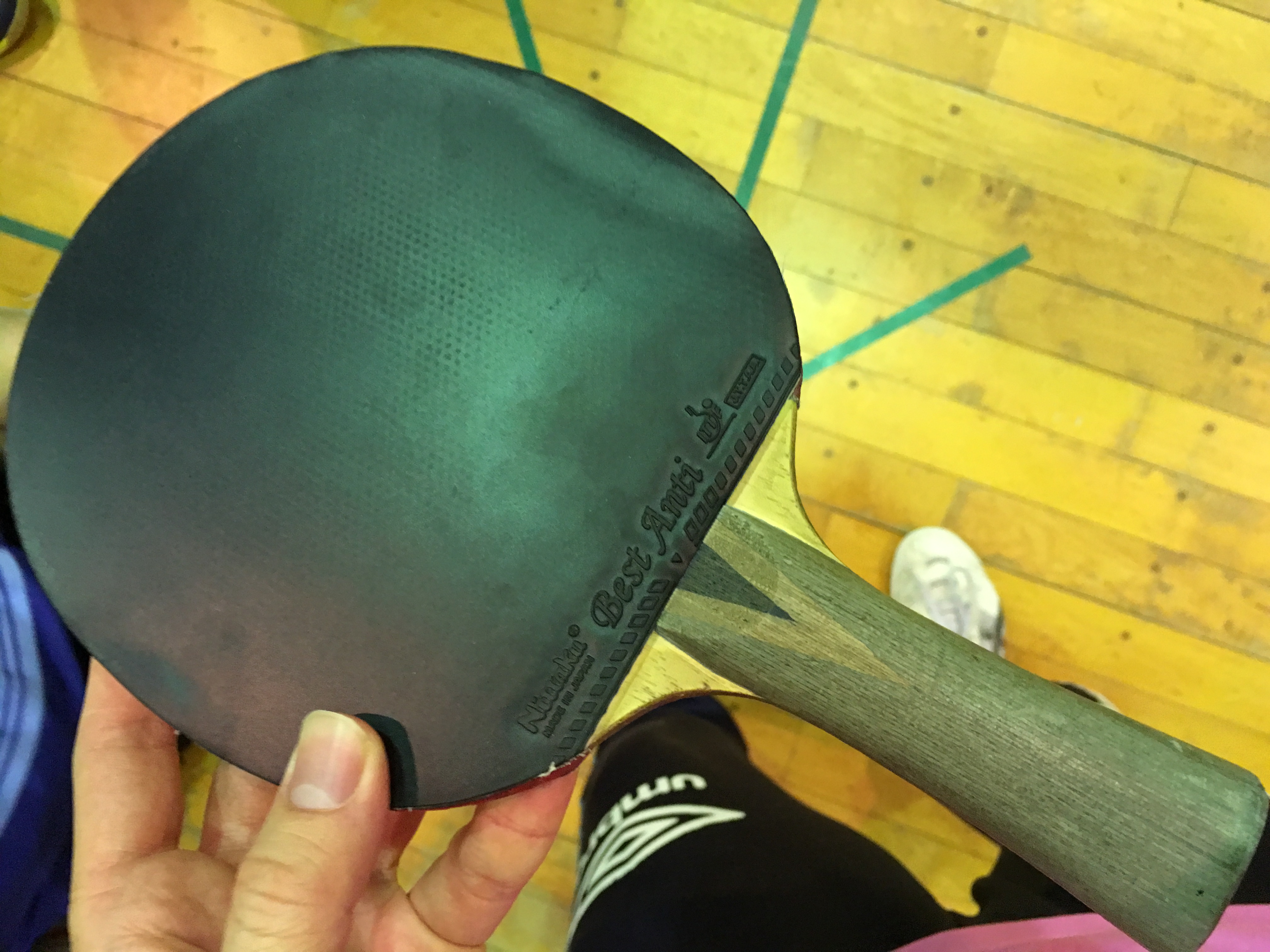 ボールを吸収するような感じのタイプの柔らかいアンチです。