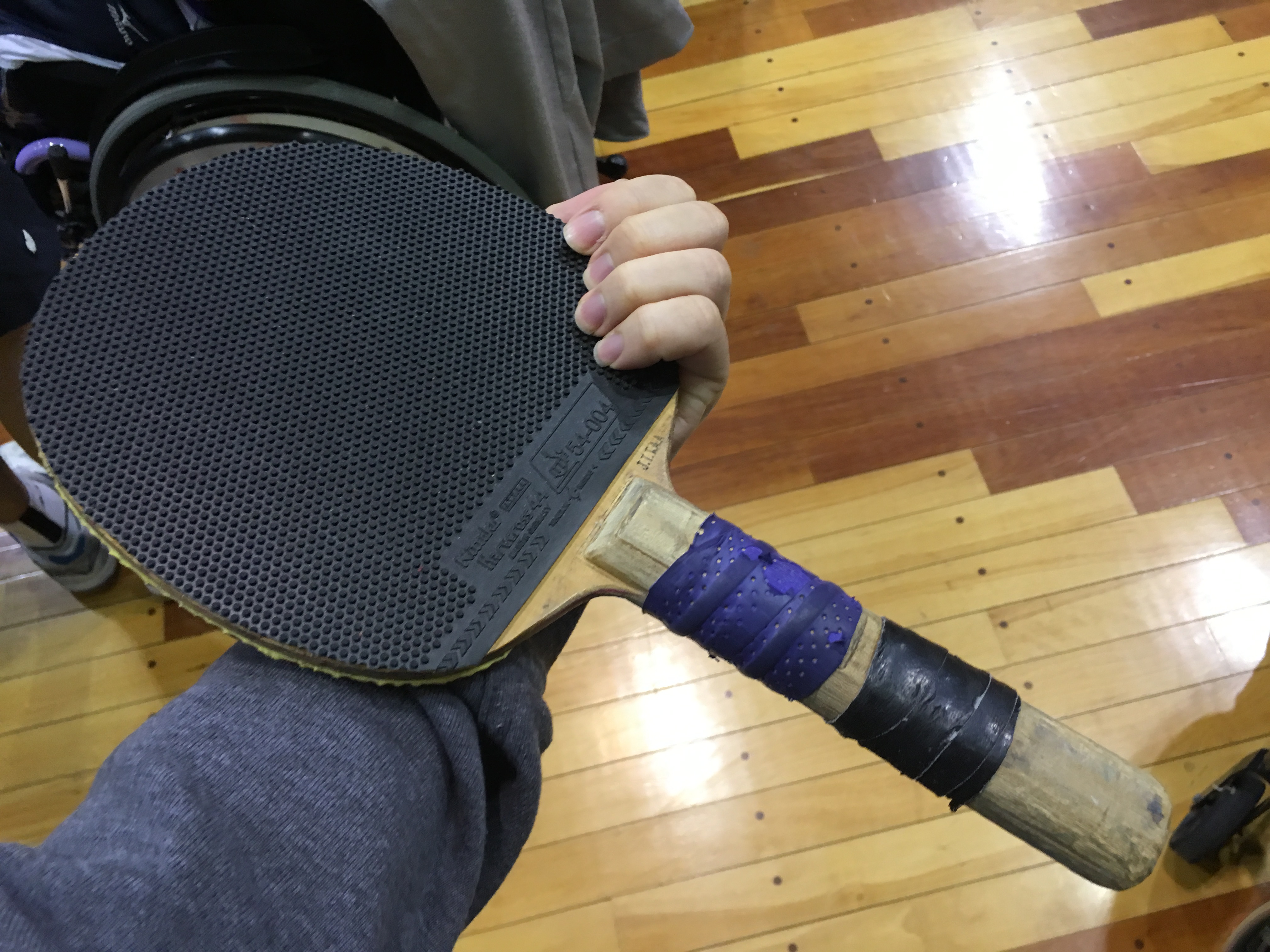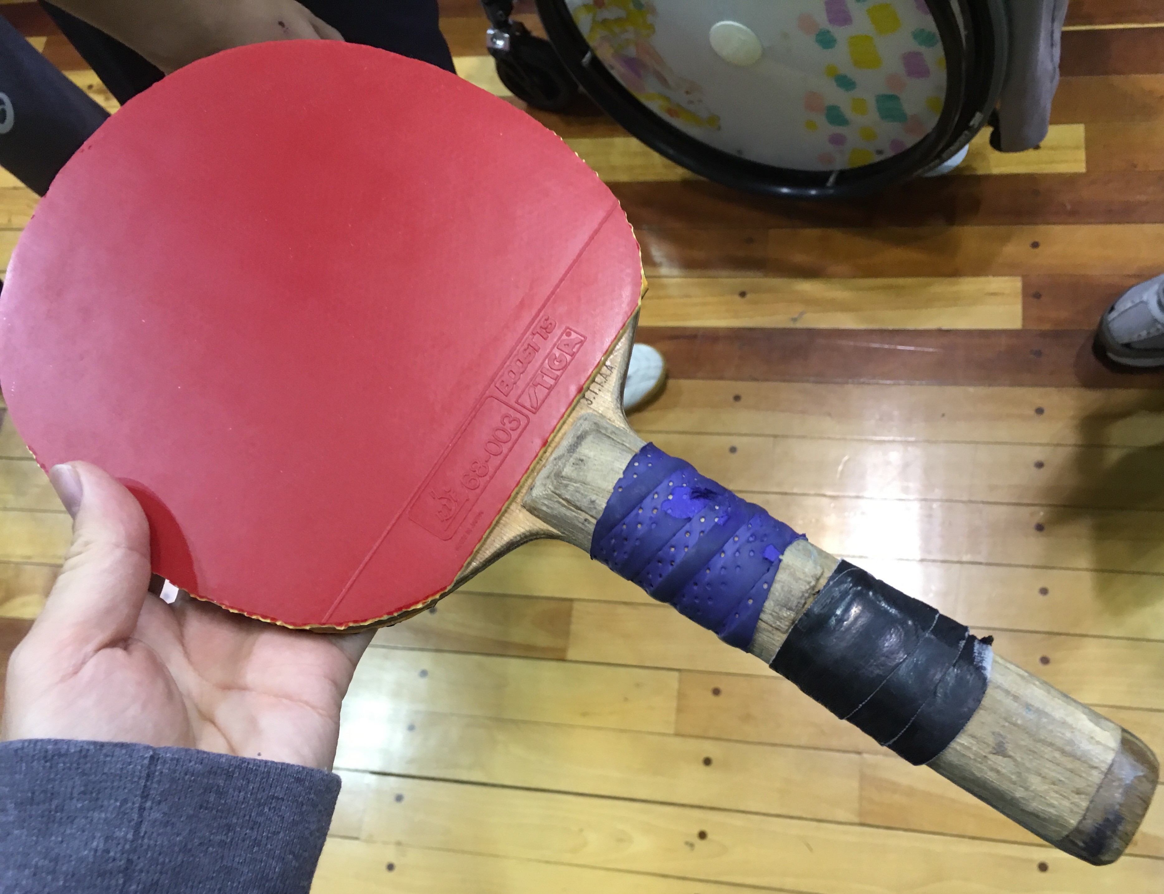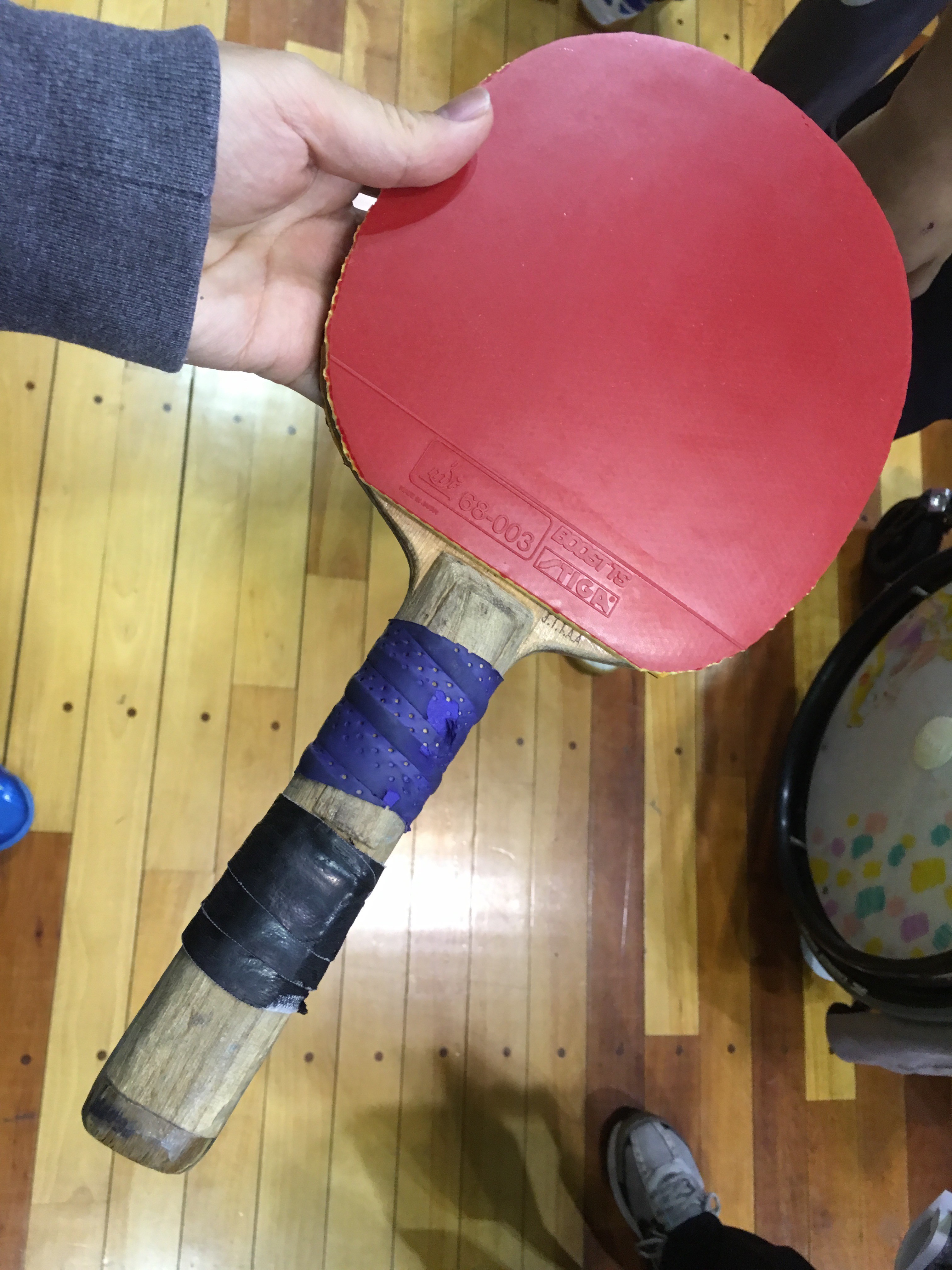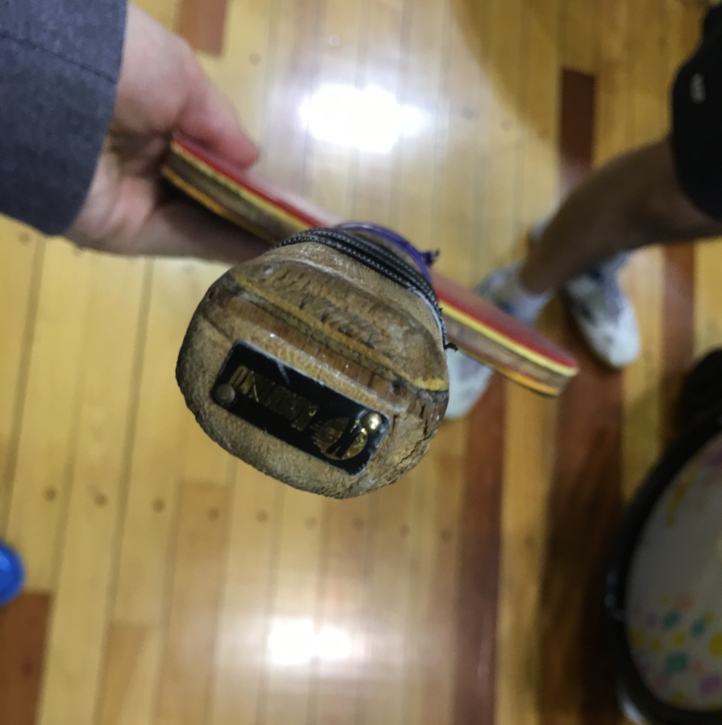 かなり珍しいラバーを貼っていて、ラケットも単純に珍しいので